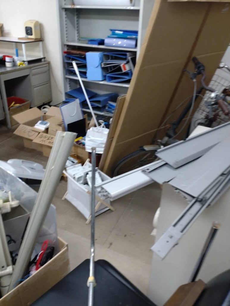 長年使用されてきたオフィスには、デスクやキャビネット、冷蔵庫、電化製品、そして大量のファイルや書類が残されていました。